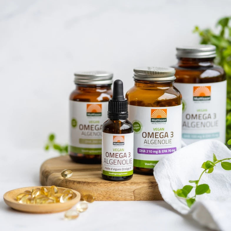Algenolie is een 100% plantaardig Omega-3 supplement en wordt gemaakt van duurzaam gekweekte algen. Het is hiermee een duurzame en vegan vervanger voor Omega-3 supplementen uit visolie.